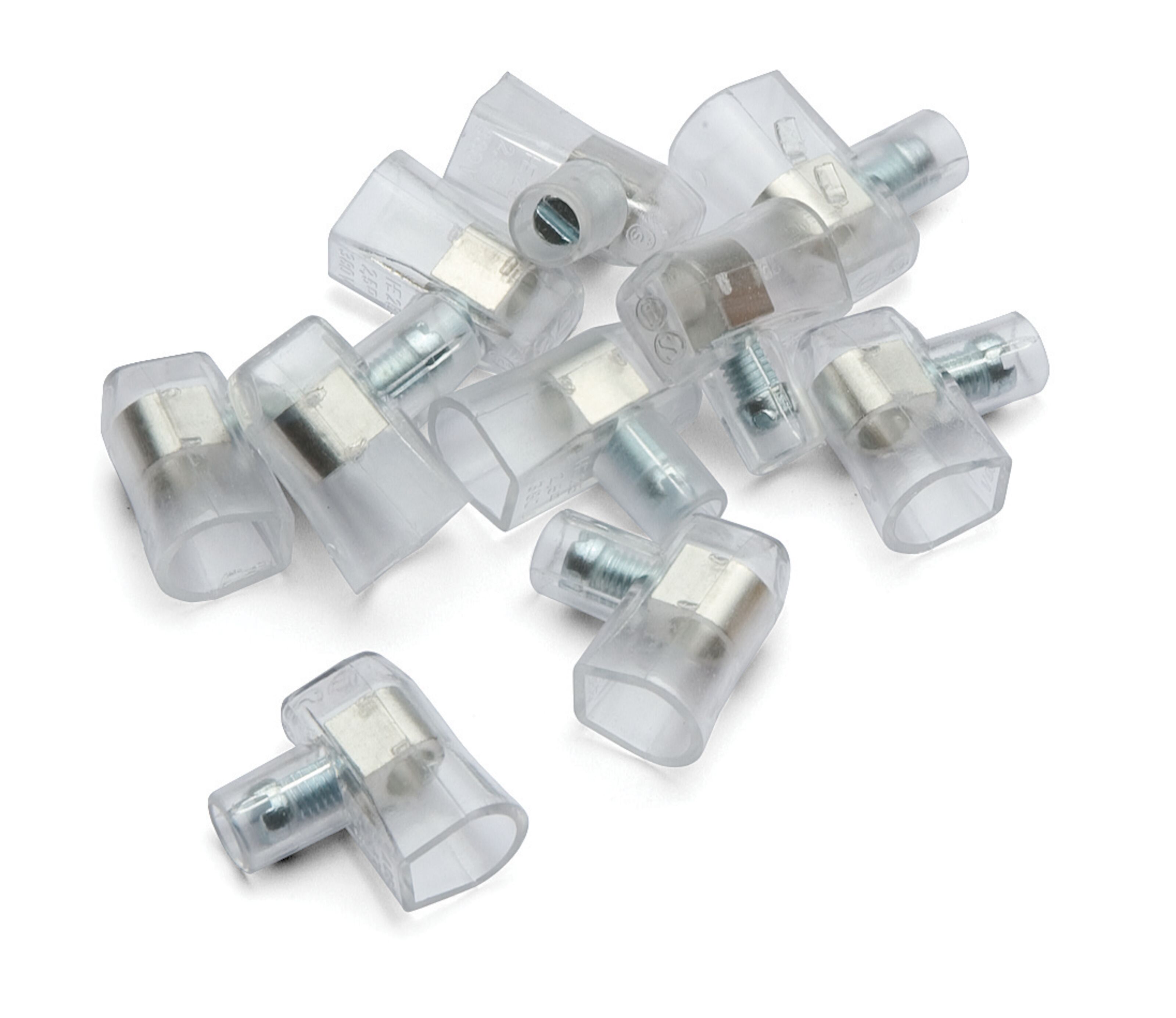 Koblingsklemme som kobler sammen elektriske ledere på maks. 3 x 2,5 mm² eller 2 x 4 mm². Transparent plast. 10 stk. per pakke. Maks. spenning: 450 V.