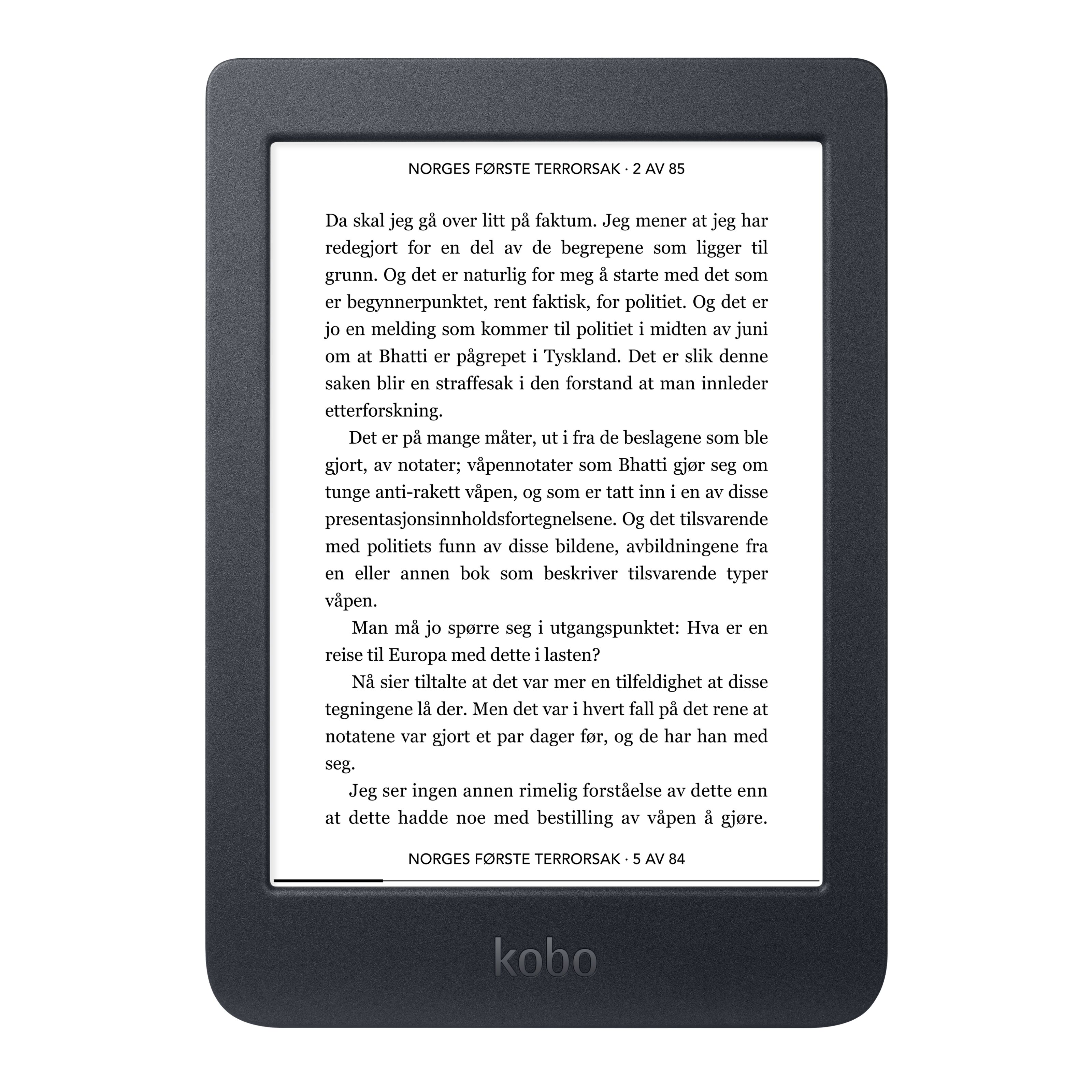 Lesebrett med stor og tydelig 6" E-ink-berøringsskjerm med bakgrunnsbelysning. Kan leses i alle lysforhold og tilpasser lysstyrke og fargetemperatur til omgivelsene. Berøringsskjerm som gjør det enkelt å bla mellom sider, bøker og innstillinger. Det innebygde minnet på 8 GB gir plass til ca. 6000 bøker.