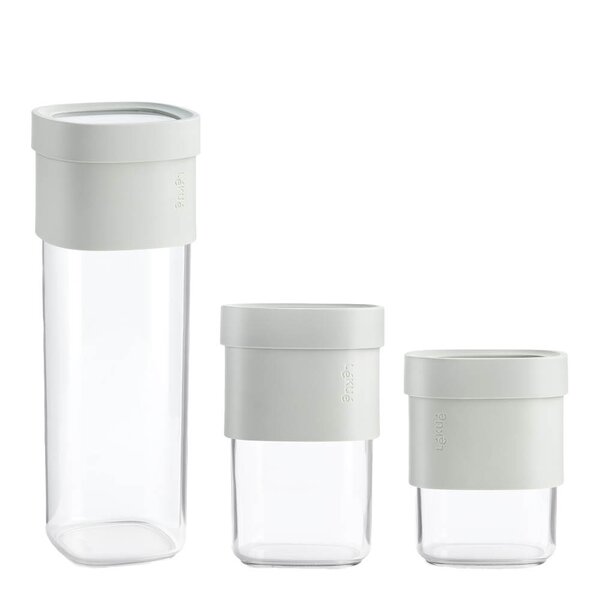 Flip Storage settet fra Lékué gir deg tre funksjonelle oppbevaringsbokser i ulike størrelser, samt en praktisk innsats for små ingredienser. Dette systemet er ideelt for oppbevaring av tørrvarer som mel, pasta, nøtter og frø, og er utformet for å gjøre organiseringen på kjøkkenet både enkel og plassbesparende. Boksene har et stilrent design og er enkle å stable, noe som gjør det lett å bygge et effektivt system tilpasset dine behov – enten du har lite eller mye oppbevaringsplass.