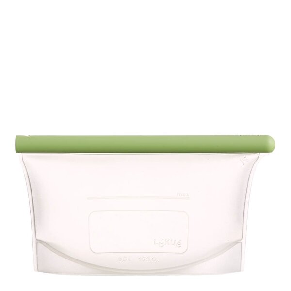 Denne gjenbrukbare silikonposen fra Lékué er en praktisk løsning for lufttett oppbevaring av både faste og flytende matvarer. Med en kapasitet på 0,5 liter passer den perfekt til mindre porsjoner, sauser eller snacks, og den tar minimalt med plass i kjøleskap eller skuff. Posen tåler temperaturer fra –60 til +220 grader, noe som gjør den like egnet for fryser som for mikrobølgeovn og stekeovn. Etter bruk kan den enkelt rengjøres i oppvaskmaskinen. En slitesterk og funksjonell oppbevaringsløsning som hjelper deg å redusere bruken av engangsplast i hverdagen.