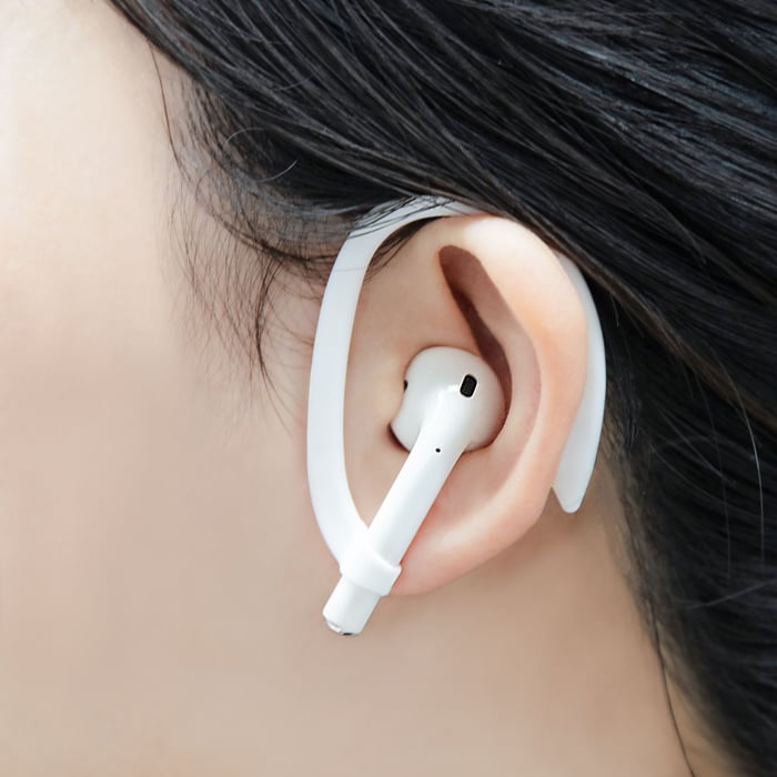 Myke ørebøyler i silikon som gjør at dine in-ear hodetelefoner med stamme/stang/stilk sitter trygt hele dagen. Behagelige å bruke, trekkes over stammen og er lette og ta av og på. Passer AirPods og andre hodetelefoner med lignende stammedesign. Kompatibilitet kan variere for hodetelefoner med kortere stamme. Inneholder to par: svart og hvitt.