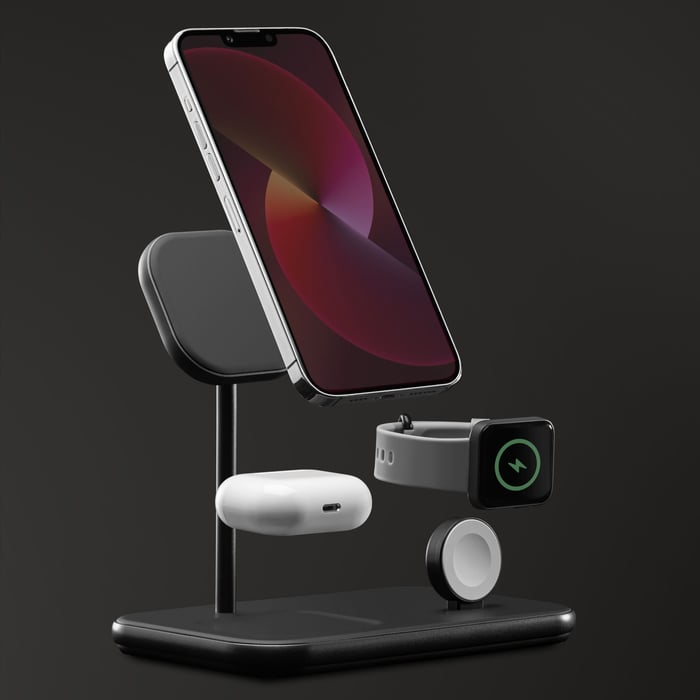 Praktisk og elegant ladestasjon for dine Apple-enheter. Sparer plass på skrivebordet eller nattbordet og bidrar til praktisk oversikt ved lading. Kompatibel med iPhone 12 og nyere med MagSafe-feste. Lader også din Apple Watch og dine AirPods med Qi-kompatibilitet. Kobles med medfølgende USB-C-kabel til en USB-C-lader (selges separat) og har total uteffekt på 25 W.Medlemstilbud: 20 % rabatt ved kjøp av 2 valgfrie mobiltilbehør fra Linocell »