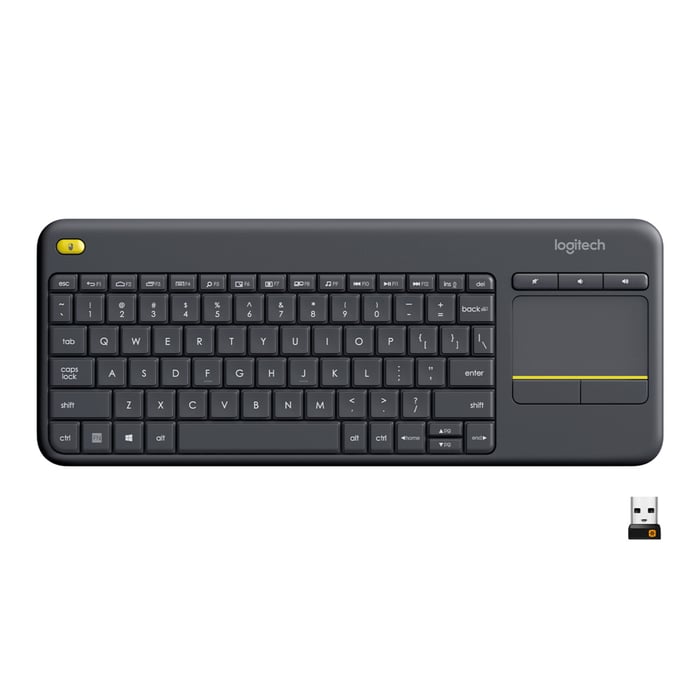 Logitech K400 er et stille, brukervennlig tastatur med innebygd pekeplate pluss alle hurtigtaster som Windows- og Android-brukere kjenner til og elsker. Komplett med mediekontroller som gjør det enkelt å navigere på en datastyrt TV.