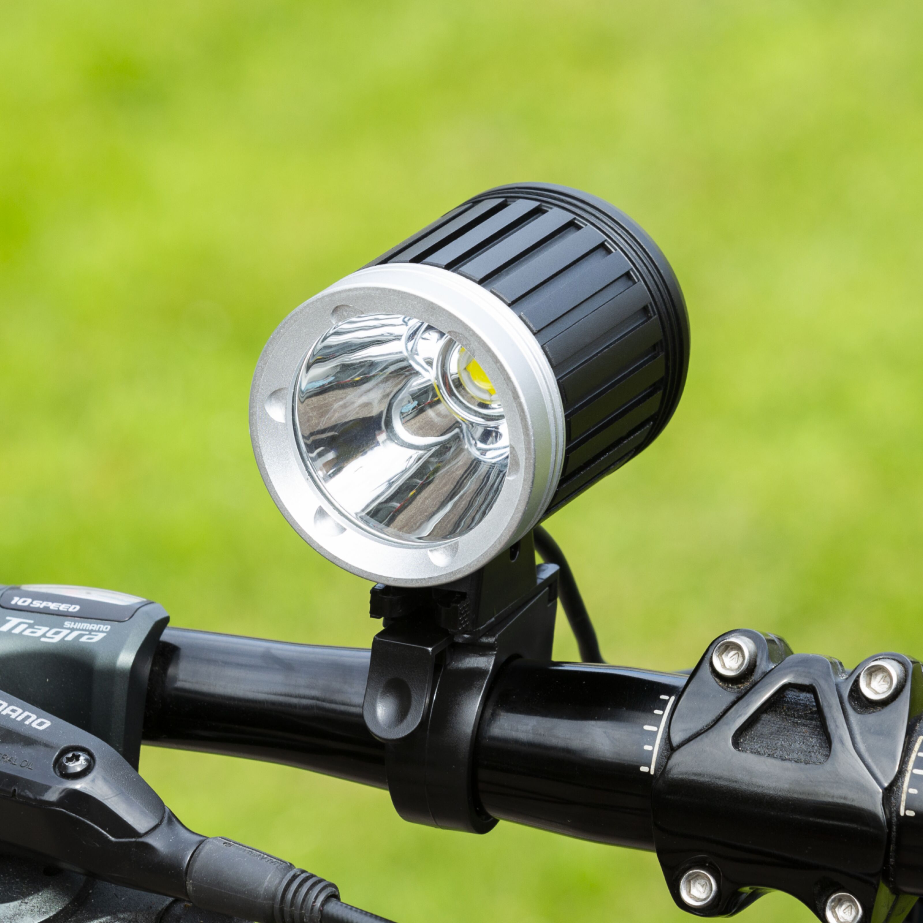 Kraftig sykkellykt fra Luxorparts med lysstyrke på opptil 3000 lumen. Velegnet til turer om kvelden og natten og om høsten og vinteren. Fest lykten på sykkelen eller bruk den som hodelykt ved hjelp av det medfølgende hodebåndet. Sykkellykten er vannbestandig og laget av aluminium. Med hurtigfestet er det lett å både montere og ta av lykten.
