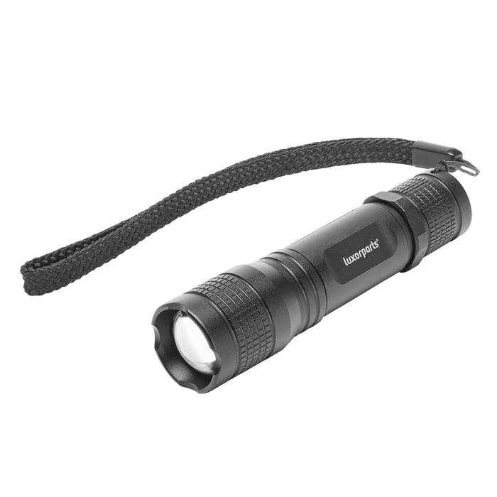 Kompakt og fuktbestandig lommelykt fra Luxorparts med justerbar lyskjegle. Gir et lys på opptil 150 lumen med justerbar lysstyrke fra ett AA-batteri (kjøpes separat). Rekkevidde: opptil 75 m. Laget av slitesterk aluminium. Batteritid: 3 til 6 timer (ved lysstyrke 100 til 50 %). IPX4-klassifisert. Mål: Ø24x94-100 mm. Vekt: 45 g (uten batteri).