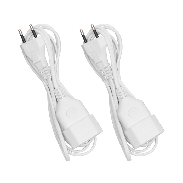 Ujordet forlengelseskabel med europauttak. Kabellengde: 2,5 m. Maks. belastning: 600 W. Kabeldimensjoner: 2x0,75 mm². 2-pk.