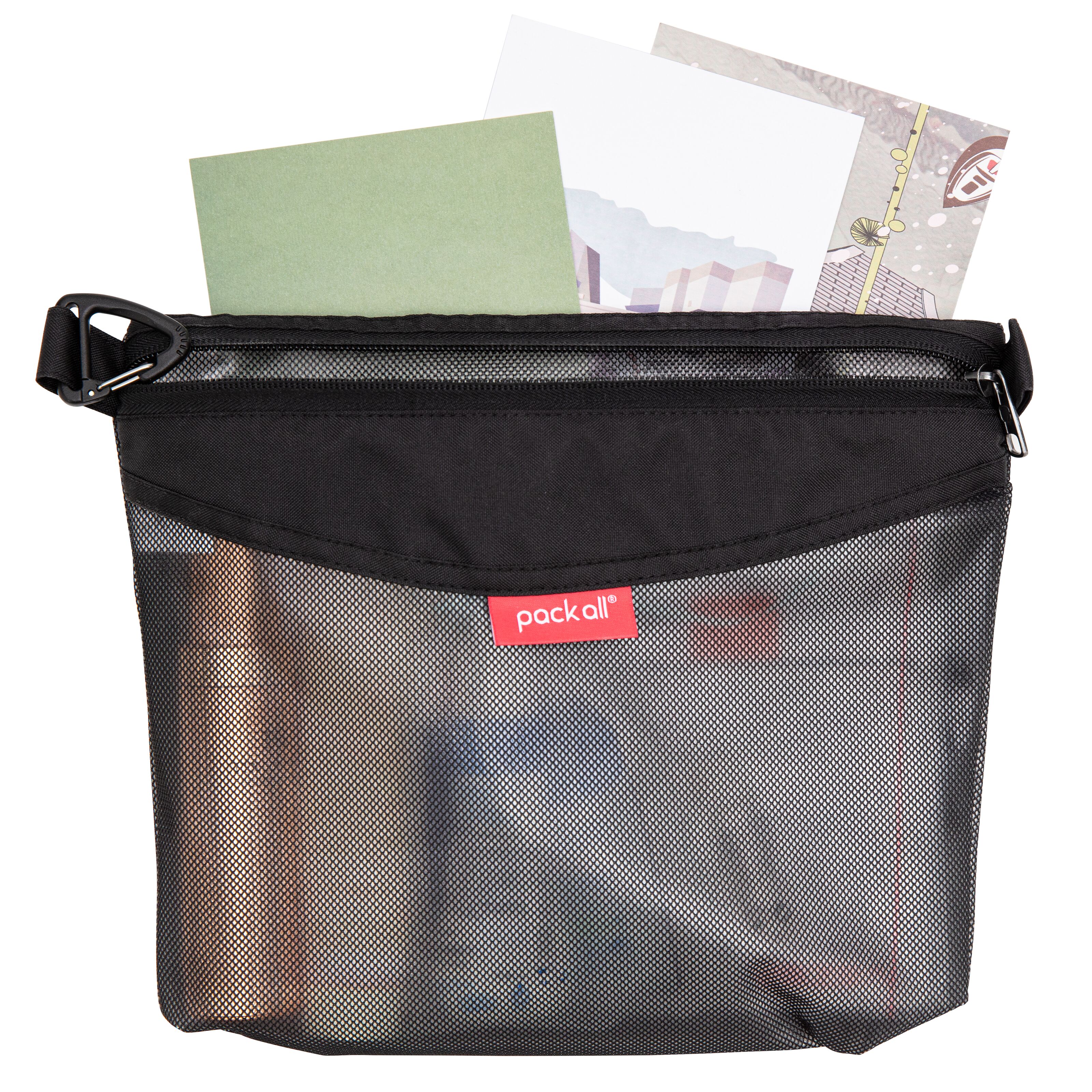 Den perfekte oppbevaringsvesken for reiser eller utflukter. Vannbestandig og utstyrt med karabinkrok for enkelt å kunne festes på bagasje. Perfekt for trygg oppbevaring av teknologi og tilbehør. Mål: 25,5x20 cm.
