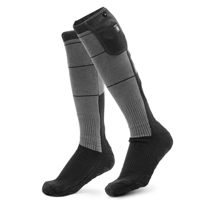 Hold føttene varme med disse myke og behagelige varmestrømpene. Perfekt for vinteraktiviteter som jakt, fiske og skigåing. Sokkene varmes opp av innebygde varmeelementer og drives av to powerbanker som er plassert i en lomme på hvert skaft. Varmen kan justeres i tre trinn og slås av. Materialet er elastisk, absorberende og pustende, og sokkene er vaskbare. Størrelse 42-47. For egnet powerbank se (80195).OBS! Ny manual angående brukersikkerhet finner du under fanen Support lenger ned på siden.