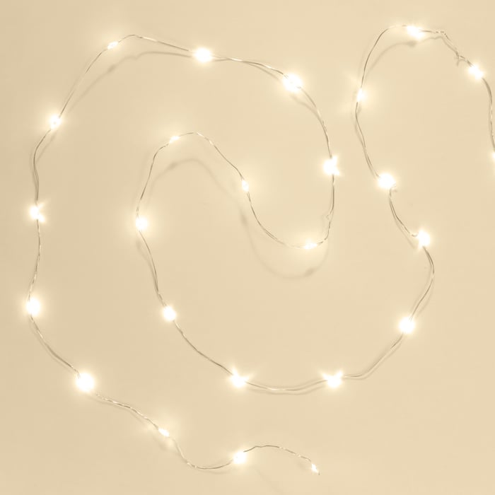Batteridrevet LED-mikrolyslenke på 1,95 meter med 40 pærer på en diskret sølvfarget kabel. Passer like bra ute i bakgården som inne i hjemmet. Velg mellom åtte forskjellige lysmoduser og bruk tiemrfunksjonen holder lenken tent i 6 timer og slukket i 18 – stemningsfull belysning akkurat der du vil ha den. AA- batterier selges separat.