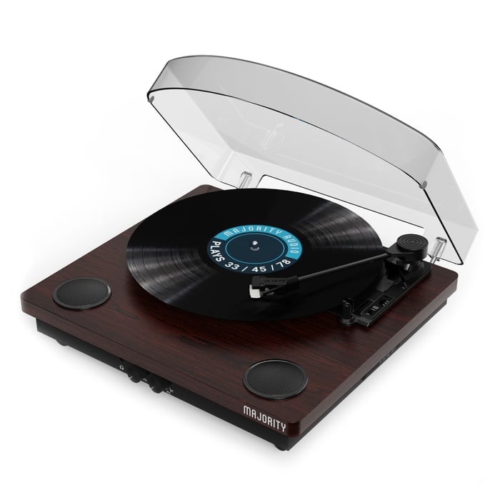 Majority Moto er en stilren og kompakt platespiller som forener klassisk vinylfølelse med moderne funksjoner. Takket være de innebygde stereohøytalerne kan du begynne å lytte med en gang uten eksterne enheter, og med innebygd Bluetooth-overføring kan du enkelt strømme vinylplatene dine til trådløse høyttalere eller hodetelefoner. Moto har tre hastigheter (33½, 45 og 78 RPM), auto-stop-funksjon, samt RCA utgang om du vil tilkoble et større lydanlegg. Uansett om du er nybegynner eller enusiast gir Moto deg en fleksibel og behaglig vinylopplevelse med lyd og stil i perfekt harmoni