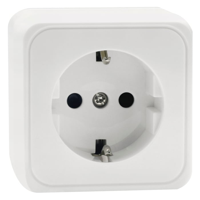 Jordet strømbryter for installasjon i hjemmet. Tidløs design for utenpåliggende montering med skruetilkobling. Trygg for husdyr og egner seg godt for utskiftning av eksisterende installasjoner. Nominell strøm: 16 A, 250 V. Utførelse: 1-veis med jord.