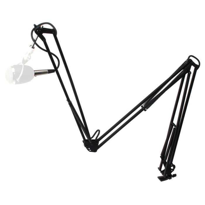 3-leddet bordmikrofonarm for mikrofoner med 5/8-tommersfeste. Smidig bevegelse både horisontalt og vertikalt. Kraftig fjæremekanisme gjør at selv tyngre mikrofoner sitter fast. Laget av metall med kraftig bordfeste. Leveres med 5 m XLR-kabel. Armlengde: 3 x 50 cm.