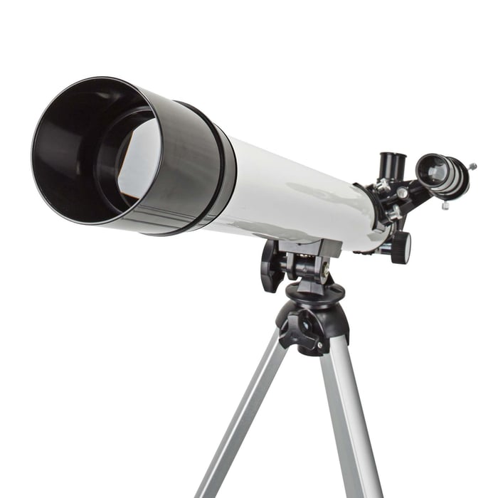 Brukervennlig teleskop som er perfekt for deg som vil undersøke objekter både ute i verdensrommet og på jordens overflate – velegnet for barn og nybegynnere. Se på månen, stjernene og de nærmeste planetene i solsystemet vårt. Leveres med stativ som har en arbeidshøyde på 125 cm. Blender: 50 mm. Brennvidde: 600 mm. Finderscope: 5 x 24. Dybde: 830 mm. Høyde: 1270 mm. Vekt: 920 g.