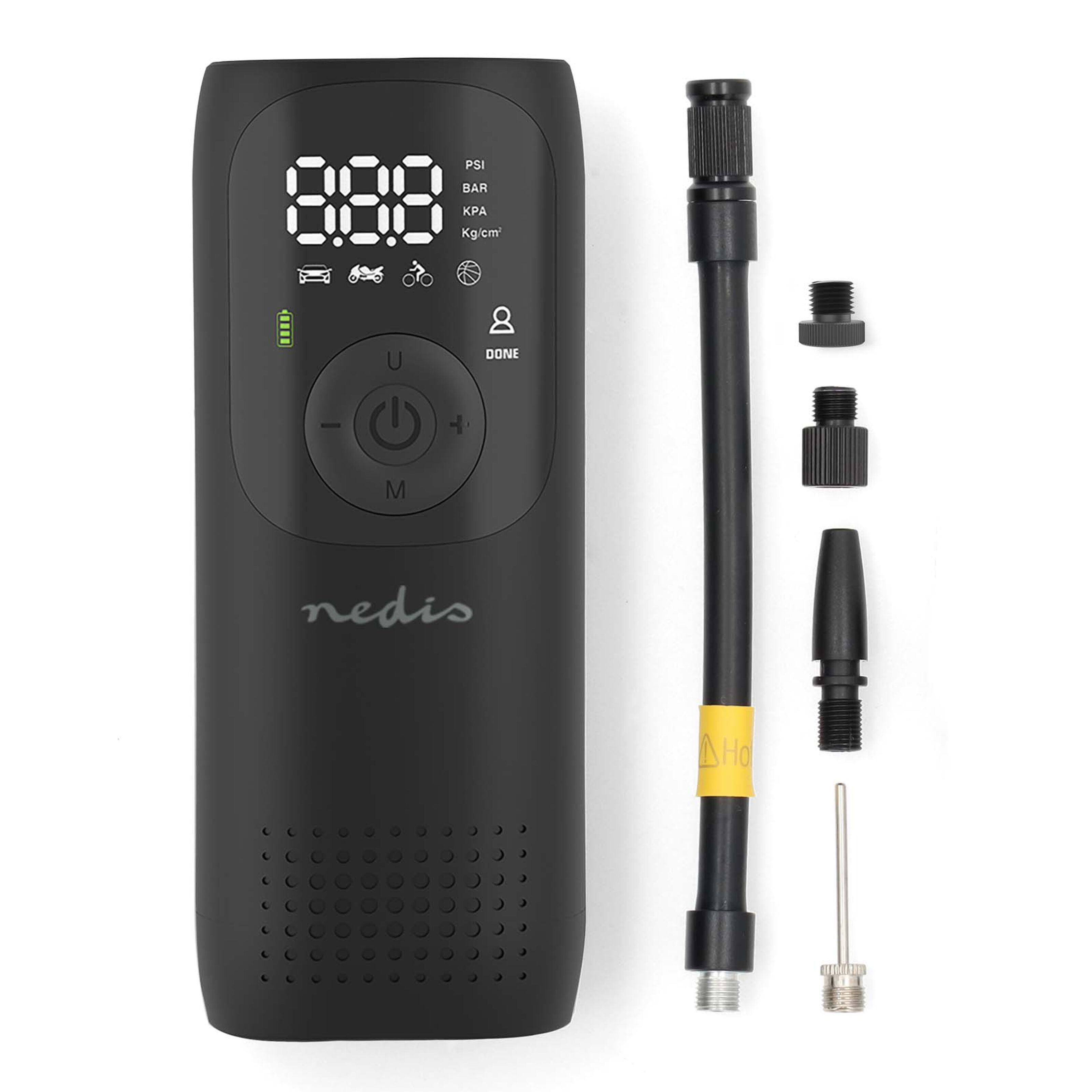 Lettbetjent, oppladbar luftkompressor som fyller hele familiens behov for luftpumping. Pumper alt fra bil, MC og sykkel til baller, baderinger og luftmadrasser. Måler lufttrykk og stopper automatisk når innstilt trykk er nådd. Like nyttig hjemme i garasjen som på campingtur eller en dag på stranden.