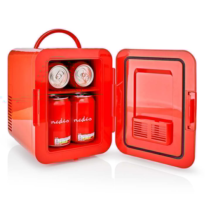 Portabelt minikjøleskap for hjem og bil. Takket være den kompakte konstruksjonen kan det enkelt plasseres på trange steder, på arbeidsrommet eller på kontoret. Rommer 4 liter, som er nok til opptil 6 stk. klassiske 33 cl-bokser eller 4 stk. av den nye slanke typen (Sleek Can). Avtakbar skiller og innebygd bærehåndtak for enklere flytting. Kan også varme innholdet. Kan drives med både stikkontakt og 12 V-uttak i bil og båt via medfølgende strømkabler. Kald drikke holder seg kjølig i flere timer etter at minikjøleskapet er slått av. OBS! Fargen kan være forskjellig mellom enhetene. Leveres i rødt eller hvitt.