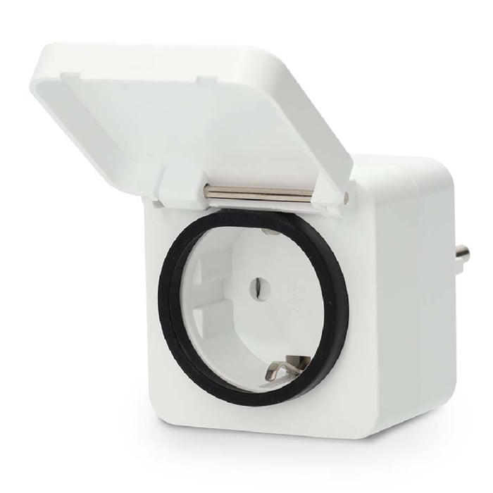 Fjernstrømbryter for utendørsbruk for enkel start av motorvarmer, utendørsbelysning og andre utendørsenheter. Kobles til via Zigbee til kompatibel gateway, for eksempel Athom Homey (52000), slik at du kan gjøre innstillinger, se energiforbruk m.m. Støtte for taleassistenter som Google Assistant, Siri og Amazon Alexa.