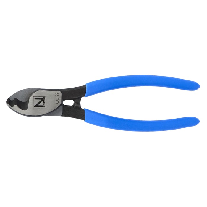 Kabelsaks med to nebb for å klippe og avisolere kobber- og aluminiumskabler. Kabelsaksen har antisklimateriale og er helstøpt i karbonstål med polerte og herdede nebb. Egnet for både flertrådede og fintrådede ledere. Maks kabelareal: 0,5-35 mm². Maks kabeldiameter: 10 mm. Total lengde: 162 mm.