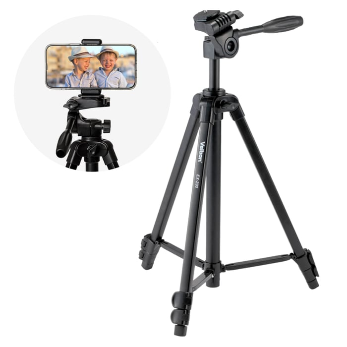 Justerbart feste for kamera som skrus fast på valgfritt kamerastativ med gjenge på enten 1/4"- eller 3/8". For tilkobling med hurtigplate til kamera med gjenge på 1/4". Kan panoreres og vippes. Innebygd vater for enkel oversikt ved korrigering. Har låsebryter for å låse kameraet i ønsket posisjon. Laget av solid aluminium og har en maksvekt på 8 kg.
