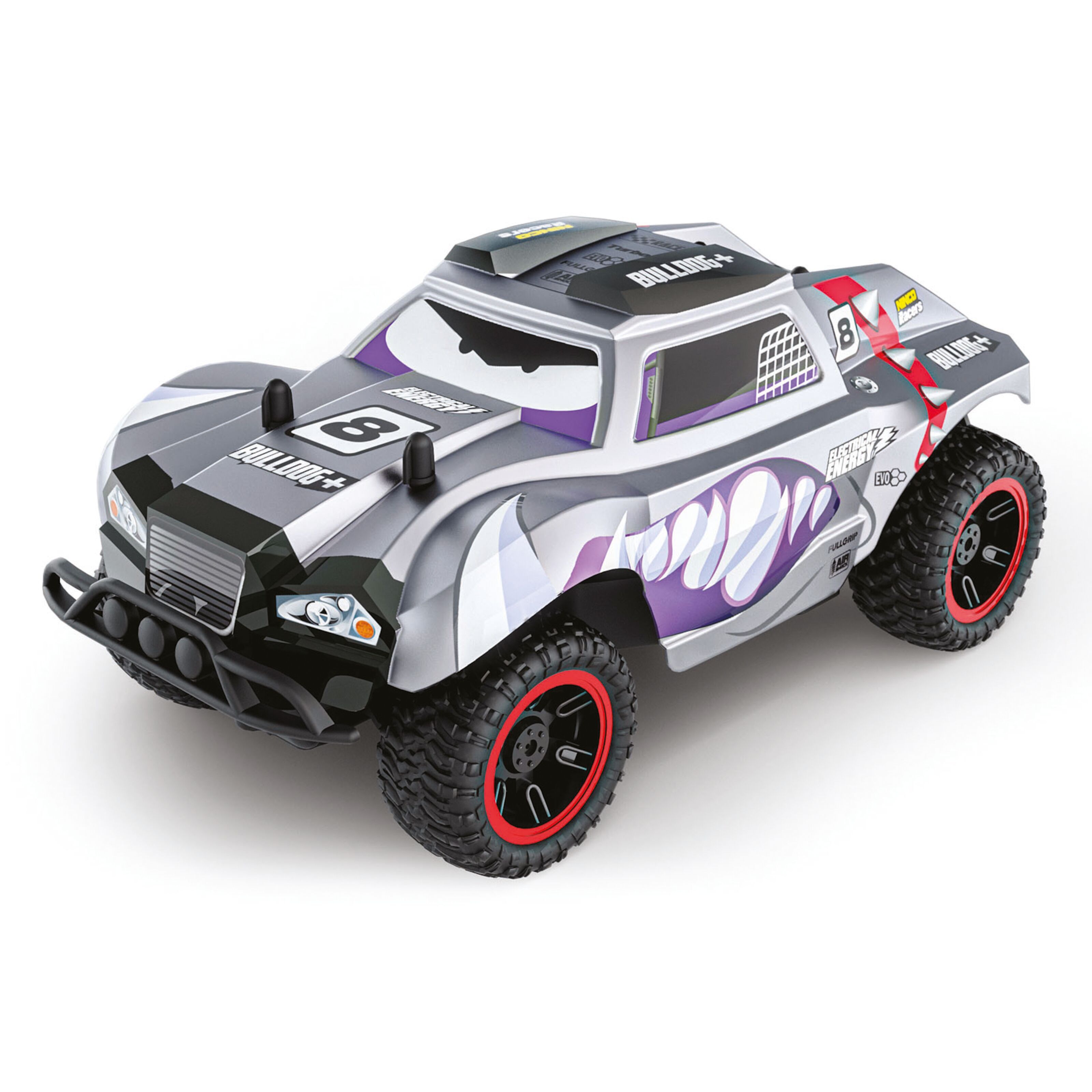 Tøff radiostyrt bil med topphastighet på 15 km/t. Styres via medfølgende 2,4 GHz-fjernkontroll, som gir forstyrrelsesfri kommunikasjon og muliggjør race med andre biler. Drives av 8x AA-batterier (følger ikke med). Mål: 260x160x110 mm.