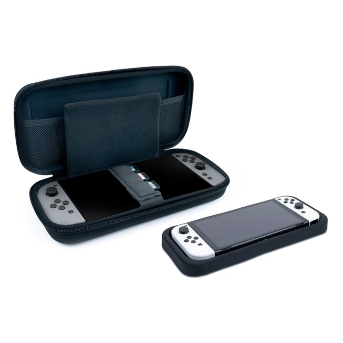 Nintendo Switch 2 Pouch holder din håndholdte konsoll sikker og klar for neste eventyr. Den slitesterke vesken beskytter både skjerm og knapper – perfekt for spilling på farten. I tillegg er det plass til spillkort og tilbehør, slik at du alltid har alt du trenger lett tilgjengelig.