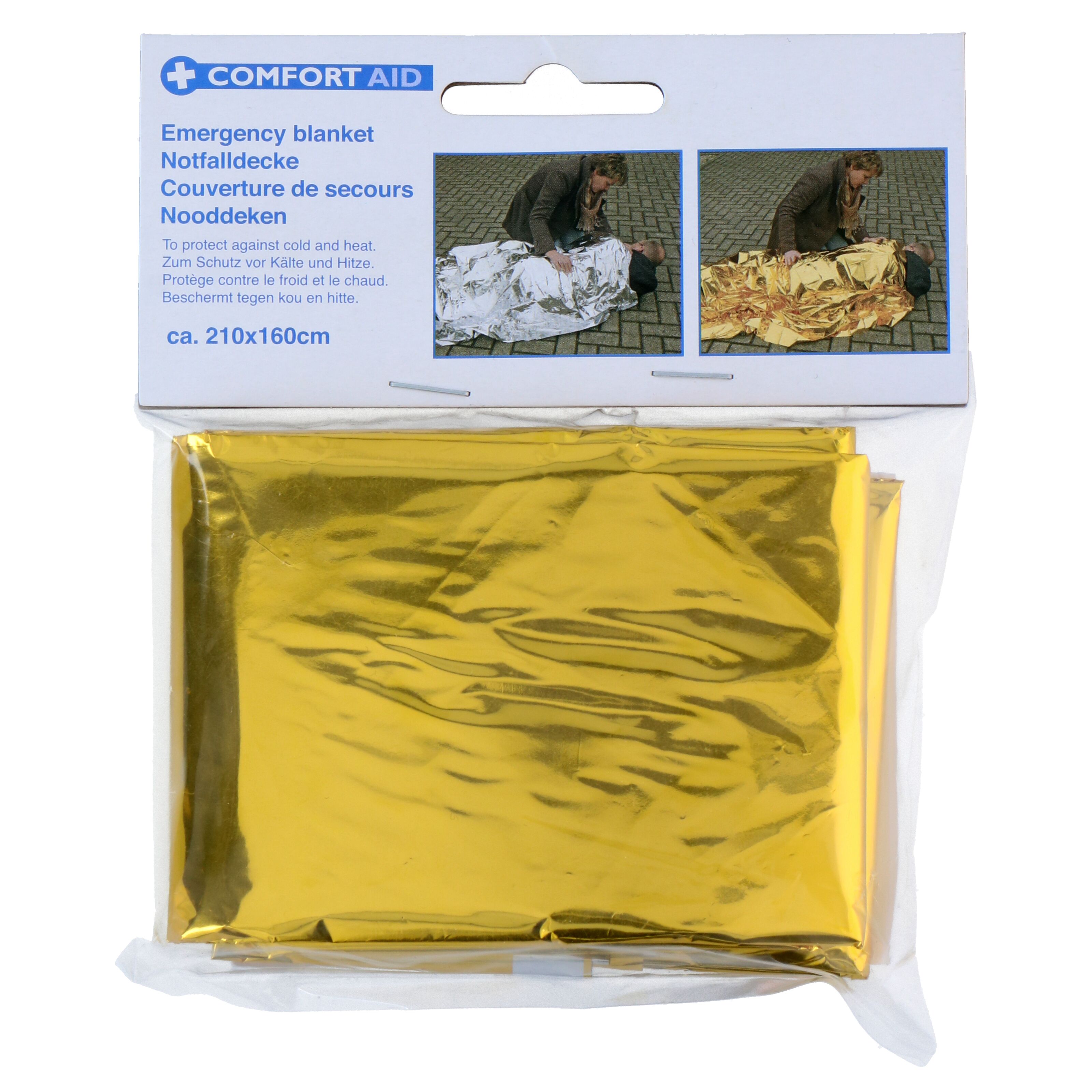 Varmeteppe i termofolie for nødsituasjoner. Brukes til å reflektere kroppens varme og øke/holde kroppstemperaturen i kalde omgivelser. Den sølvfargede siden kan også vendes utover og spennes opp for å reflektere varme og skape skygge i varme omgivelser. Størrelse, foldet ut: 210x160 cm. Vekt: 48 g.