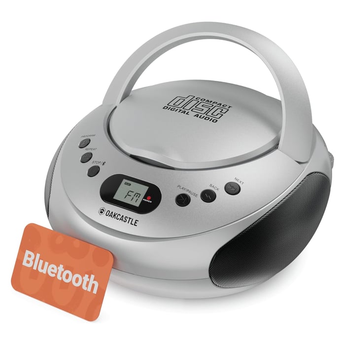 Spill CD-plater, lytt til FM-radio (bare lokalradio) eller strøm underholdningen fra mobilen til CD-spilleren via Bluetooth. CD-spilleren drives med strømkabel eller 6x C-batterier (kjøpes separat).