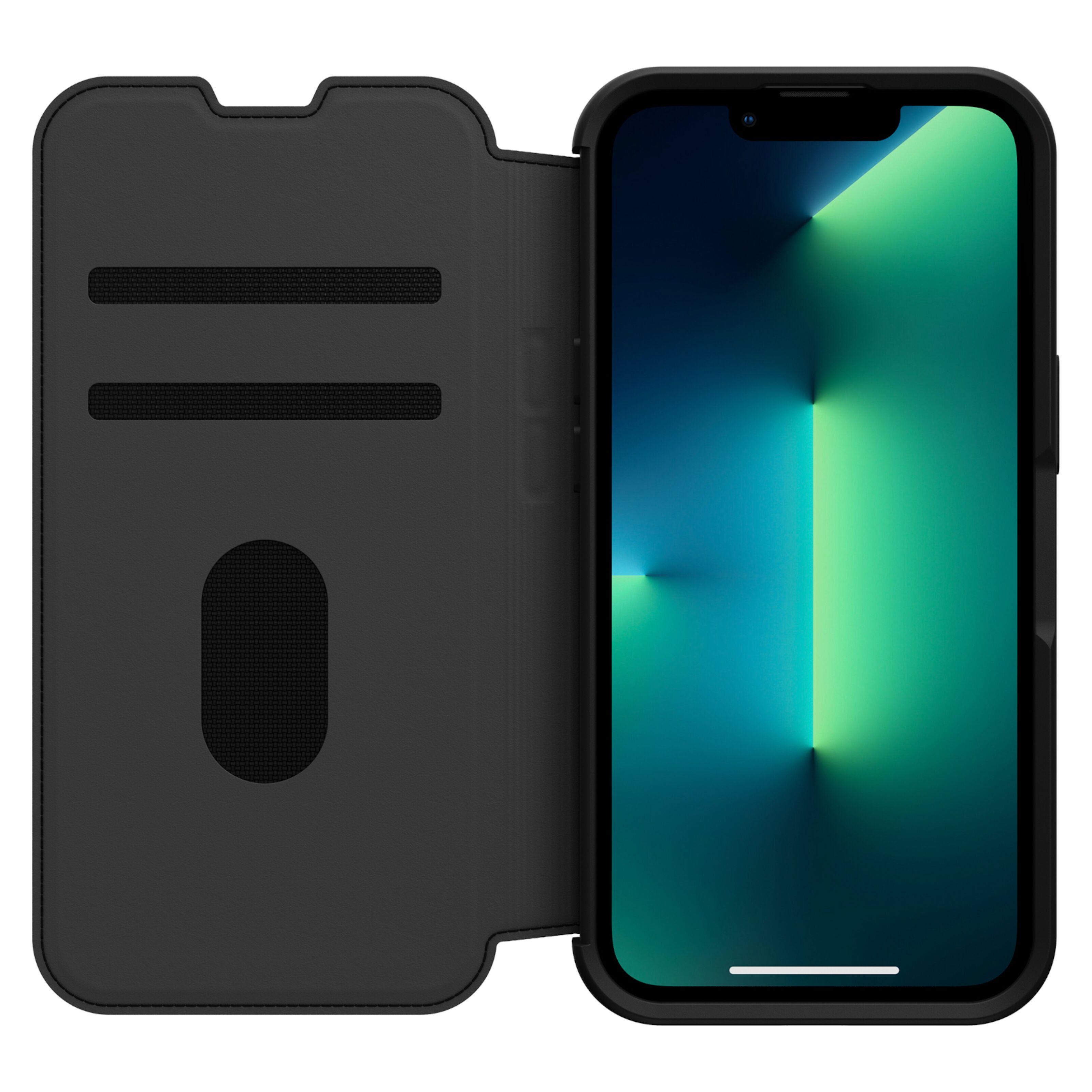 Ekstra robust mobiletui for iPhone 13 Pro. Dekselet er fremstilt av beskyttende materiale med ytre detaljer i ekte skinn. Har to plasser for kredittkort.