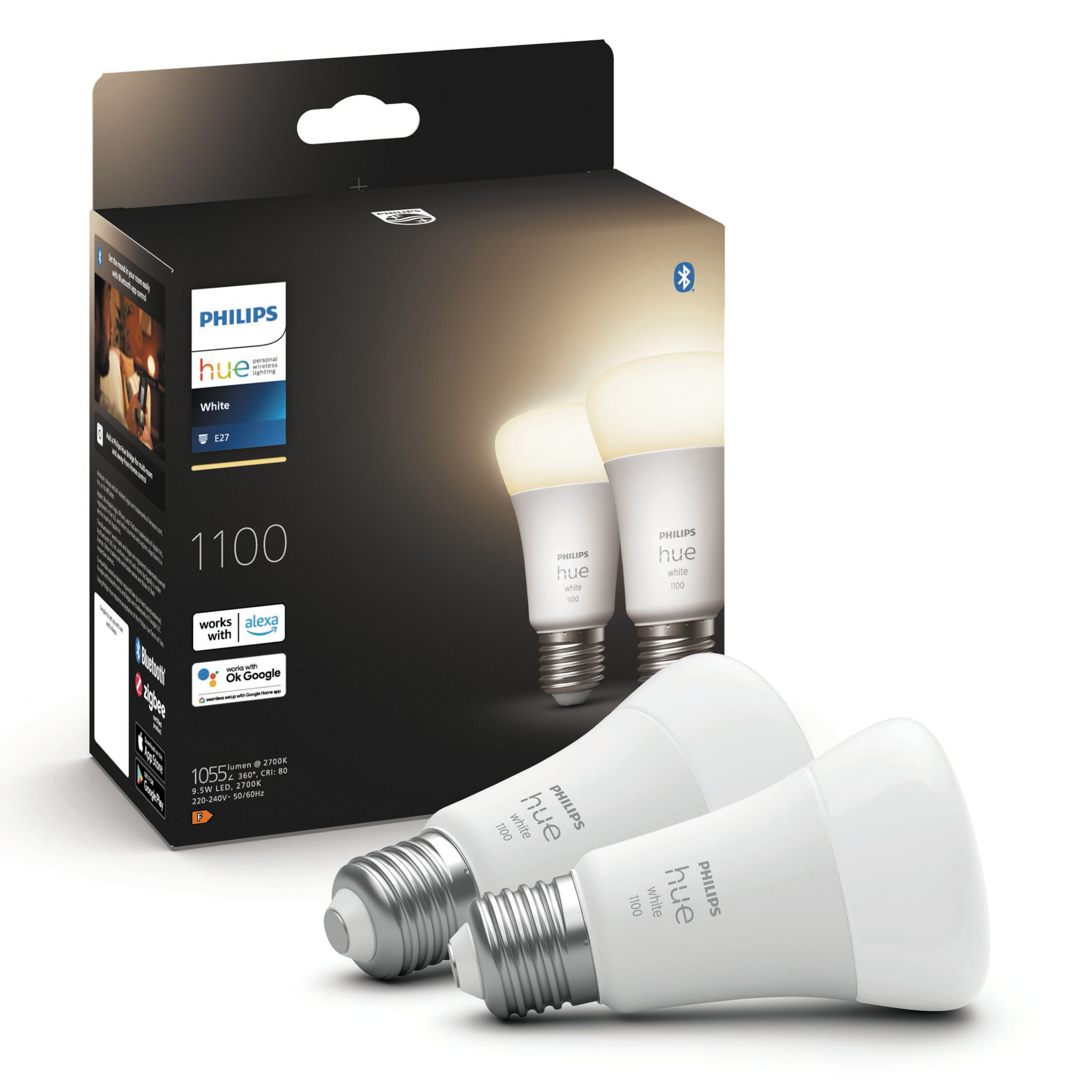 Smart LED-pære med E27-sokkel for Philips Hue-system. Lyspæren gir et mykt, varmhvitt lys (2700 K). Kan tilpasses etter musikk, brukes som wake up-light og synkroniseres med andre lyspærer/lamper. Kan brukes direkte via Bluetooth eller med Hue-bro (50840) for full funksjonalitet. Sett farge på hverdagen med Philips Hue