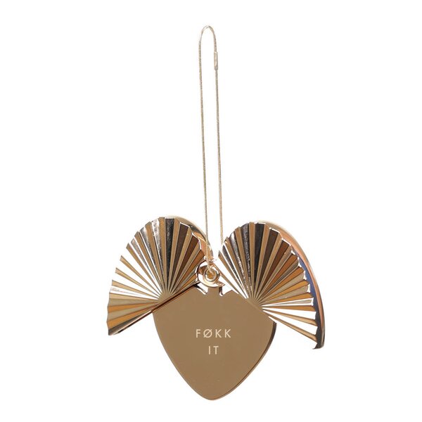 Hjerteåpneren FØKK IT fra Pictureit er julepynten for deg som tar ting med et smil – og litt mindre alvor. Når englevingene folder seg ut, vises teksten «FØKK IT» – en rå, men viktig påminnelse om å senke skuldrene og ikke stresse med alt. Designet av Solgunn Stensig og forgylt med 14 karat gull, kombinerer denne julepynten eleganse med glimt i øyet. Perfekt til juletreet, på en gave eller som gave til en venn, kollega eller søsken som trenger et lite frislipp i julestria. En annerledes og befriende variant i Pictureits årlige hjerteåpner-serie. - Hjerteformet julepynt med englevingedesign - Tekst med humor og attityde: «FØKK IT» - Metall med 14 karat gullbelegg - Designet av Solgunn Stensig for Pictureit - Perfekt som gave med glimt i øyet