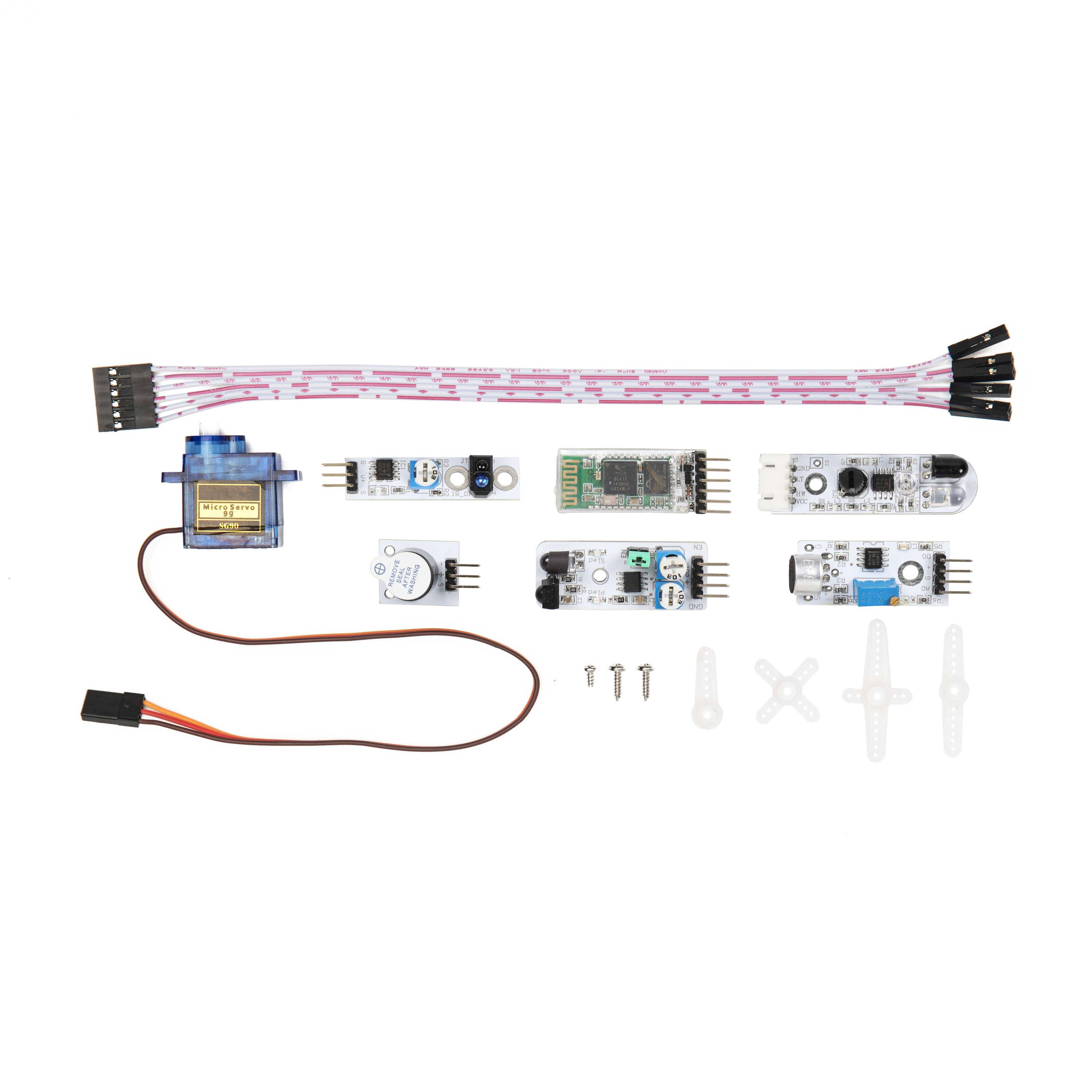 Øk funksjonaliteten og mulighetene med tilbehørspakken til Playknowlogys Robotbil (87288). Du kan for eksempel programmere bilen til bli styrt fra en linje i bakken med linjesporingssensoren, la bilen reagere på lyd og lys med lyd- og lyssensorene, og styre bilen med IR eller Bluetooth med de respektive sensorene. Perfekt for de som har bygd ferdig robotbilen, utforsket mulighetene med Arduino og programmering og er klare for neste utfordring.