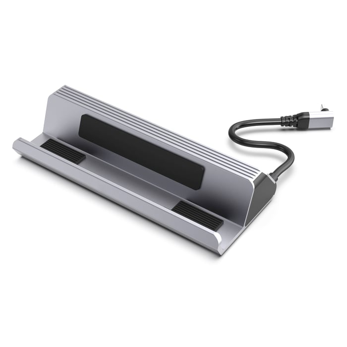 Robust aluminiumsdokkingstasjon for Steam Deck og ROG Ally-enheter. Lar deg koble til en ekstern 4K-skjerm, håndkontroller, nettverkskabel, USB-lader med mer. USB-C-porten støtter PD-lading opptil 100W.