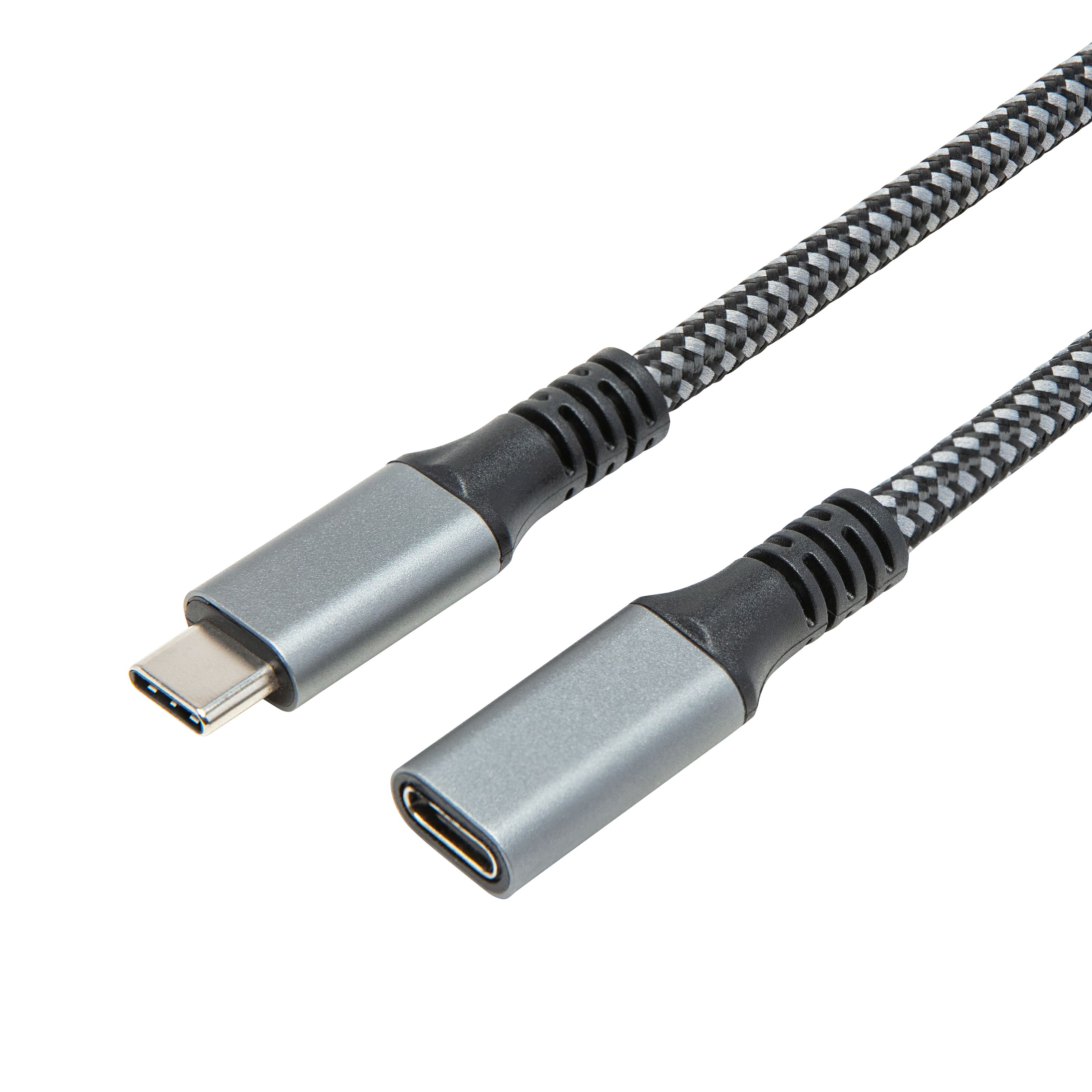 Slitesterk forlengelseskabel med USB-C-tilkobling for lading og dataoverføring. Perfekt for tilkobling til en multiadapter eller lader. Støtte for overføringshastighet på opptil 100 W og 10 Gb/s. Robust dobbeltflettet isolasjon av nylon.