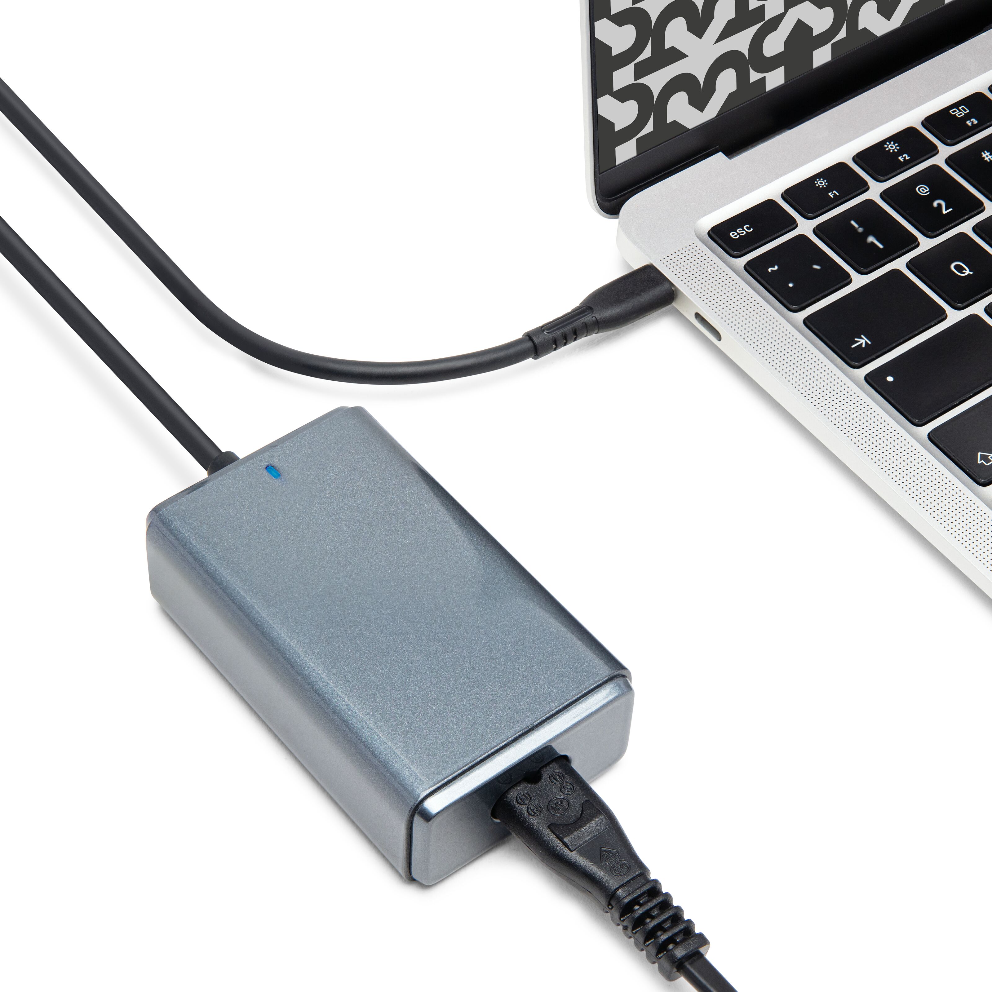 Kompakt og kraftig lader for laptops, nettbrett og mobiler som har USB-C. Takket være den kompakte størrelsen er den lett å ta med i dataetuiet eller ryggsekken. Laderen har støtte for PD-lading (Power Delivery), som er en standard for hurtiglading som aktiveres automatisk hvis enheten din har støtte for det. Lader alle enheter med USB-C opptil 65 W via den 2 meter lange USB-C-kabelen. Leveres med utskiftbar C7-strømkabel på 1,5 m. Total kabellengde: 3,5 meter. Innspenning AC 100–240 V.