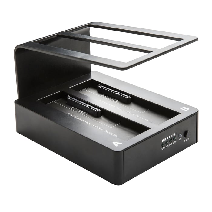 Dokkingstasjon for 2,5- og 3,5-tommers harddisker (Sata 3 Gb/s). Diskene kan klones uten tilkoblet datamaskin. USB 5 Gb/s (USB 3.0) for høye overføringshastigheter (bakoverkompatibel med USB 2.0). Fungerer med krypterte harddisker og er uavhengig av filsystemet. Støtte for disker på max. 8 TB. Kompatibel med Windows og Mac OS. Leveres med USB 5 Gb/s (USB 3.0)-kabel og strømadapter. Mål: 142 x 122 x 80 mm.