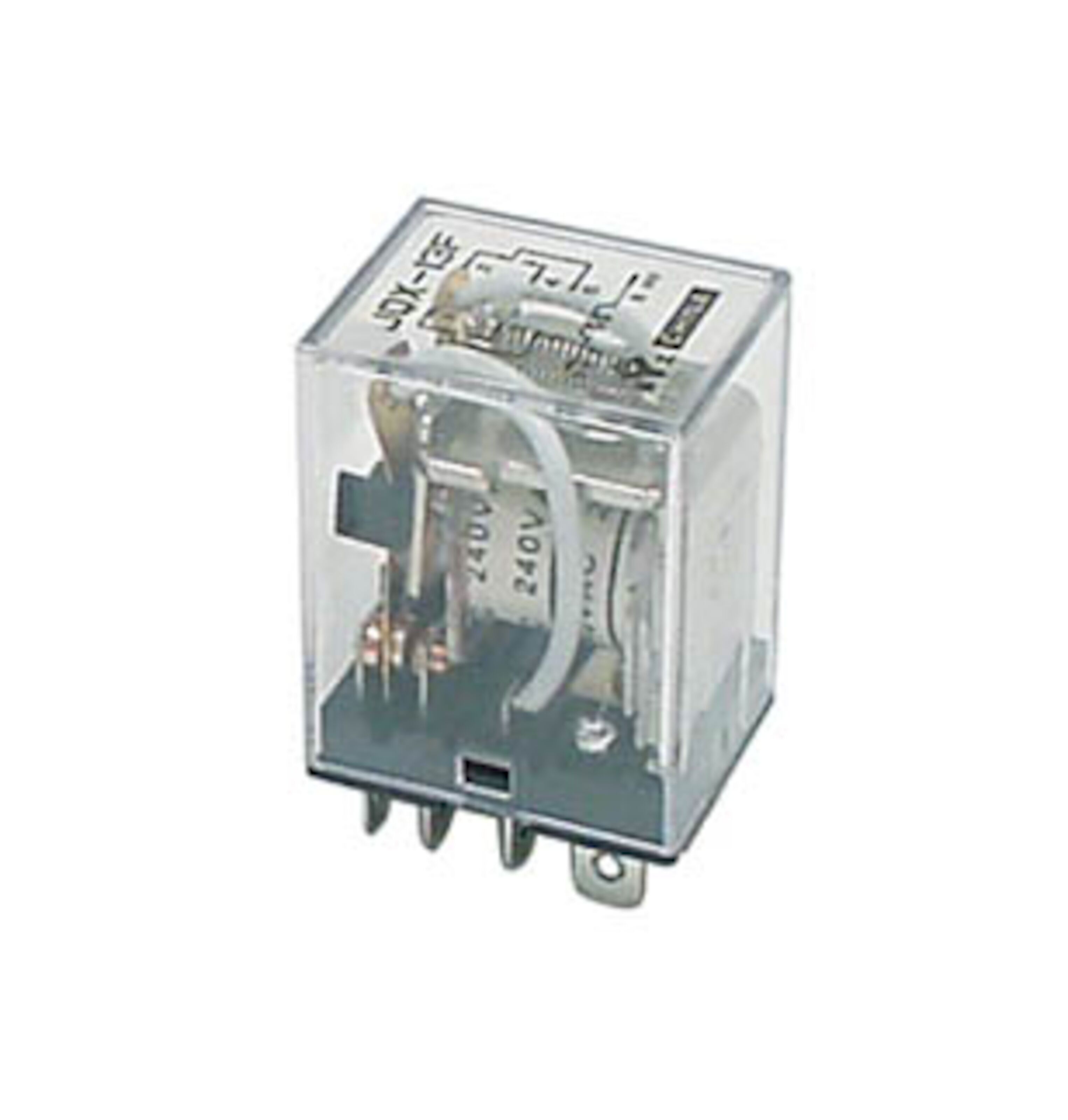 Maks belastning: 10 A ved 250 Vac eller 24 Vdc. For tilkobling i sokkel, med flatstift eller lodding. 2-polet kobling. Mål: 35 x 28 x 21,5 mm. Spole: 230 VAC, 14,4 kohm, 1,2 VA