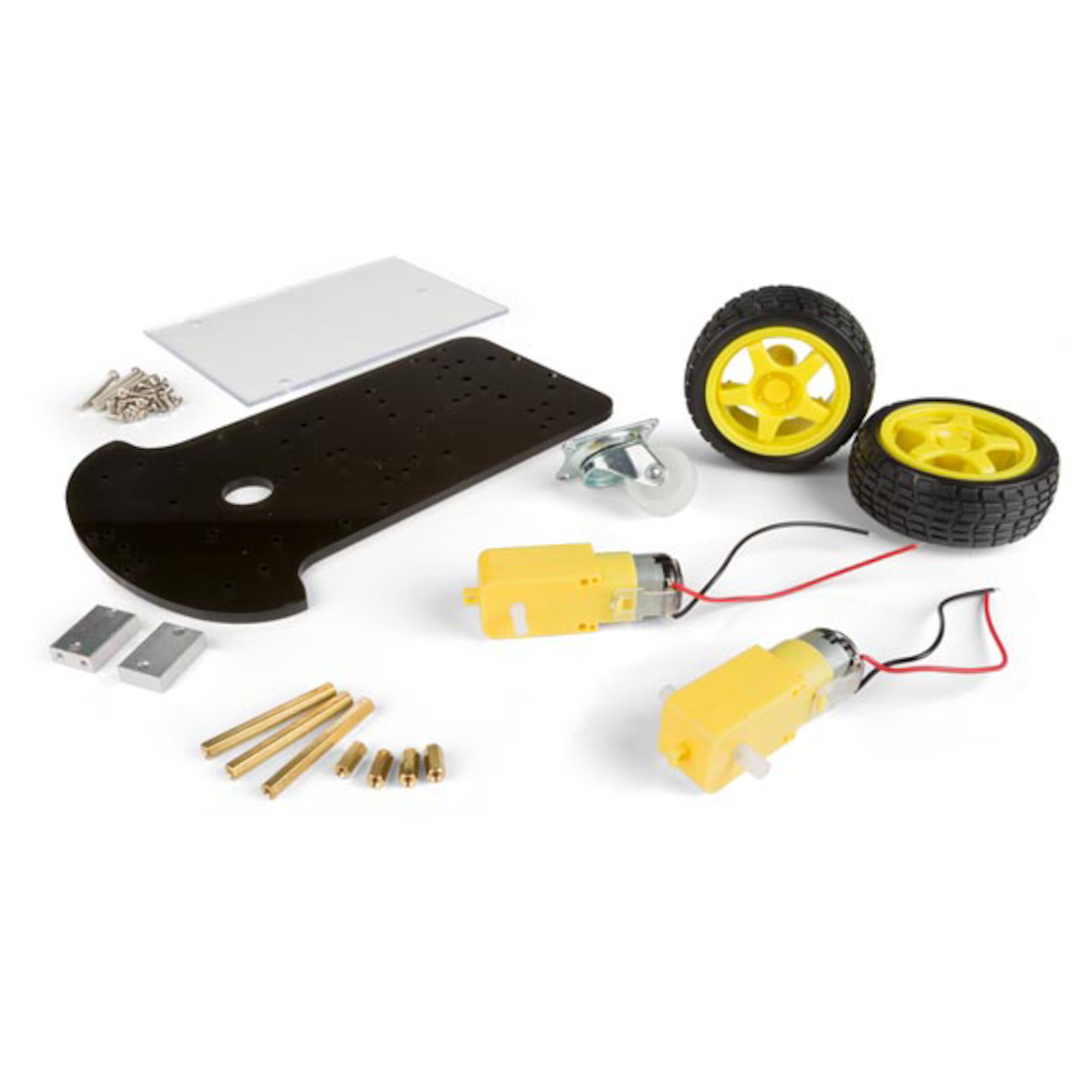 Byggesett for å bygge en egen robot med to hjul. Inneholder chassis, motorer og hjul. Kompletter med motordrift, f.eks. en Arduino og strømforsyning. Gjør roboten smart med f.eks. optisk linjesporing (87064) eller avstandsmåler. Chassiset har hull for montering med skrue. Spenning for motorer: 5–10 V.