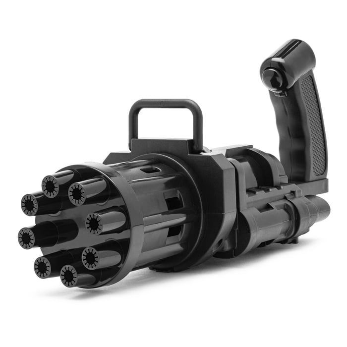 Sikt og skyt! Blås hundrevis av såpebobler med et knappetrykk. Enkel og morsom å bruke og lett å ta med. Har 8 munningshull. Drives av 3x AA-batterier (selges separat). Materiale: ABS-plast. Farge: svart. Leveres med 50 ml såpebobler og en boblebrikke. Ekstra såpeboblevæske: (22053).