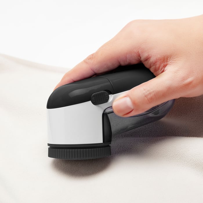 Nuppefjerner som gjør klærne som nye igjen. Nuppene fjernes effektivt fra plagget og havner i beholderen. Også egnet for andre tekstiler, som pledd og laken. Drives av 2x AA-batterier (kjøpes separat).