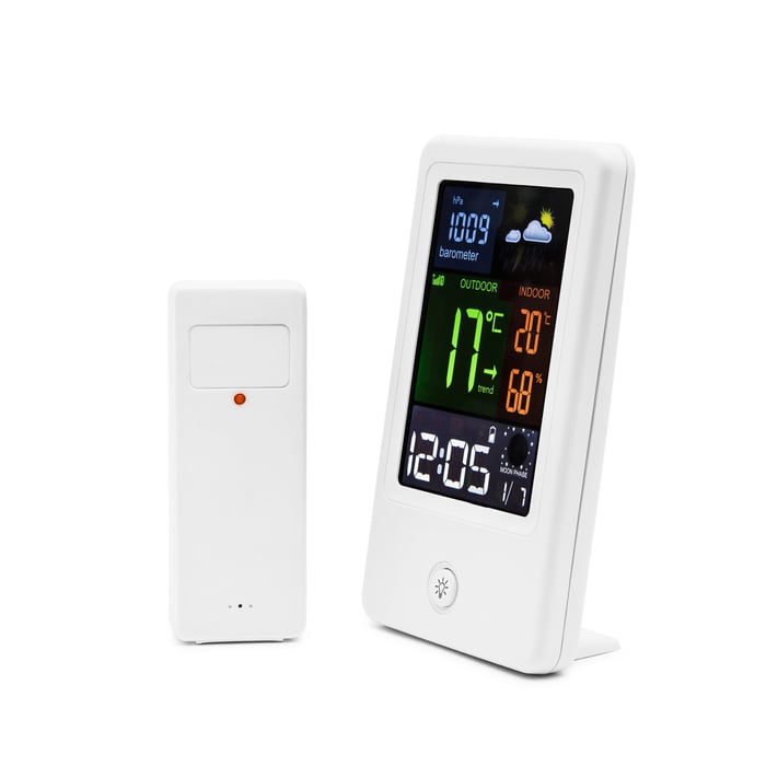Værstasjon med fargedisplay for inne- og utetemperatur samt luftfuktighet. Radiostyrt klokke. Viser prognose, tid, dato og månefaser. Kan bygges ut med to ekstra sensorer (selges separat). Måleområde: 0–50 °C (inne), -40–60 °C (ute). Luftfuktighet: 25 til 90 % RH (ute). Rekkevidde: opptil 50 meter. Hovedenheten drives av medfølgende strømadapter eller 3x AAA-batterier (kjøpes separat). Utendørsmottakeren drives av 2x AAA-batterier (kjøpes separat).