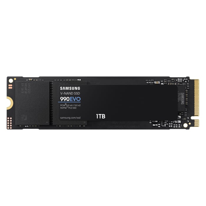 Samsung 990 Evo er en NVMe (2280) 2.0 SSD for montering i et M.2-spor. Perfekt for oppgradert lagring og hastighet for PC. Effektiv energihåndtering og avansert termisk kontroll for optimert kjøling og ytelse. Kompatibel med PCIe 4.0 x4 og PCIe 5.0 x2 for raske lese- og skrivehastigheter på henholdsvis 5000 MB/s og 4000 MB/s. Kapasitet: 1 TB.