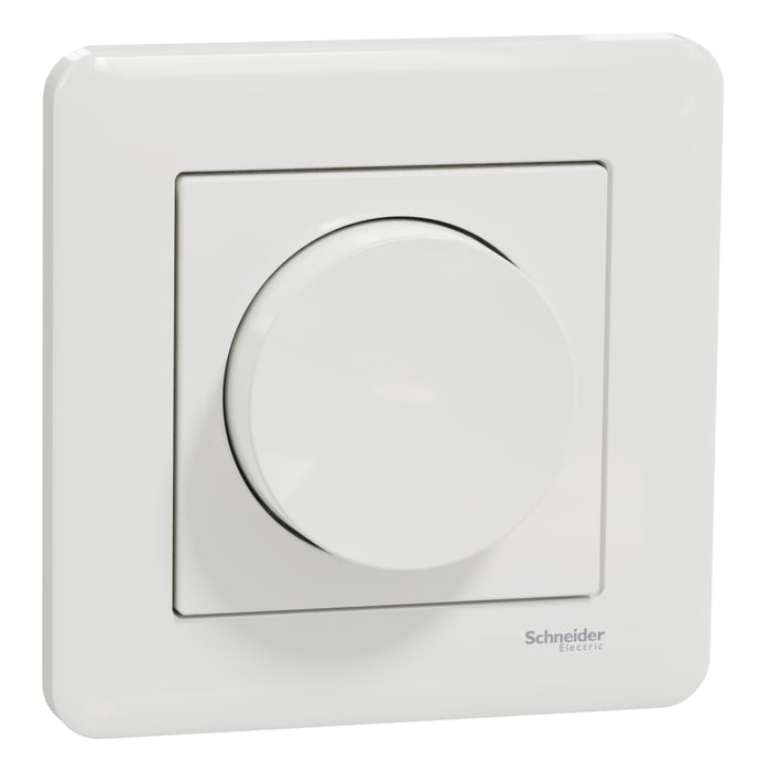 Innfelt bakkantsdimmer for LED-pærer. Fungerer også for glødelys og lavspenningshalogenpærer med elektronisk transformator. Kobles til nullpunkt for best mulig dimmeytelse. Kan dimme laster ned nær 0 watt når den er koblet til nøytrallederen. Laveste lysnivå kan justeres. Innebygd termisk beskyttelse, overbelastningsbeskyttelse og kortslutningsbeskyttelse. Nominell strøm: 10 A, 230 V.