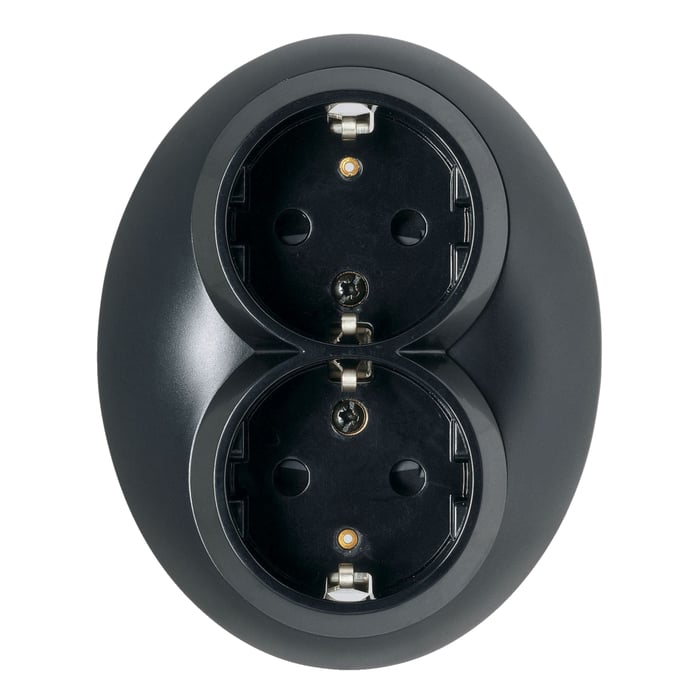 Renova-serien – det selvskrevne alternativet for en tidløs look i hjemmet. Innfelt jordet 2-veis vegguttak med skrueterminal. Maksstrøm: 16 A. Kapslingsklasse: IP20. Farge: Svart (NCS S 9000-N). Innbyggingsdybde: 22 mm. Mål: Ø83x22 mm.