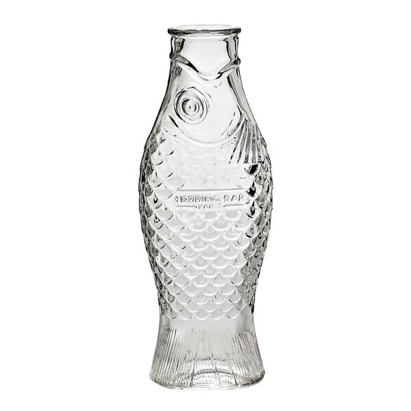 Fish & Fish karaffel fra Serax, designet av Paola Navone, rommer 85 cl og er inspirert av sildens karakteristiske form. Den klare varianten gir et stilrent uttrykk, samtidig som den lekne silhuetten gjør karaffelen til et blikkfang på bordet. Siden lanseringen i 2016 har Fish & Fish vært en bestselger, og nå finnes den i flere farger – inkludert denne transparente versjonen som passer inn i alle typer borddekking. En kombinasjon av humor, funksjon og design som gjør karaffelen til en favoritt hos mange.