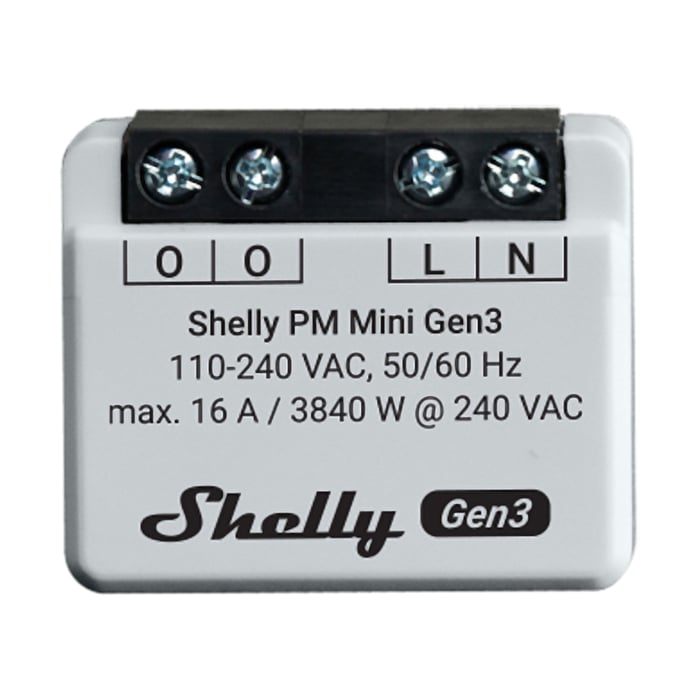 Shelly Plus PM Mini er sannsynligvis verdens minste wifi-styrte effektmåler. Enheten er beregnet på montering bak strømbryter, vegguttak eller lampekontakt. Takket være den kompakte designen passer den i de fleste koblingsbokser for vegg og tak. Det måler automatisk energiforbruk, som kan overvåkes gjennom Shelly Smart Control-appen, og som enkelt kan brukes i automatiseringer.