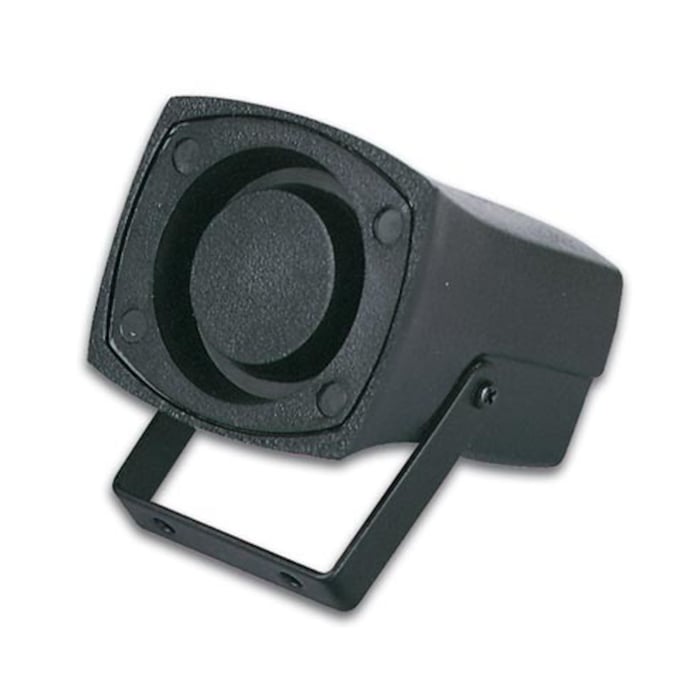 Sirene med 107 dB lydstyrke. Frekvens: 1,5 til 3,5 kHz. Drives med 6–12 V (DC). Tar 200 mA ved 12 V. Hullavstand for montering: 22 mm (CC). Mål: 40 x 45 x 60 mm.