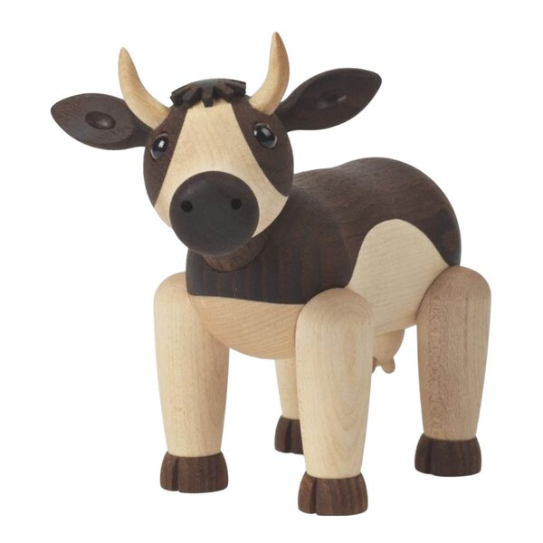Spring Copenhagen Daisy Ku trefigur 12,5 cm er en sjarmerende figur som bringer minnene om livet på gården inn i stuen. Skapt av designeren Chresten Sommer, uttrykker Daisy både styrke og mildhet, som en verdig representant for naturens rolige rytme. Med sitt lune blikk og solide kropp, gir hun en følelse av trygghet og harmoni. Materialvalget består av FSC-sertifisert lønn i kombinasjon med termoask og skinn, noe som gir figuren et levende og autentisk utseende. Figuren er håndlaget, noe som gjør hver Daisy unik og full av personlighet. Dette er en ku som bærer med seg historiene fra enger og fjøs – og som nå gjerne slår seg til ro i et nytt hjem. Daisy er enkel å vedlikeholde og trenger kun en fuktig klut for å holde seg fin. Med sitt uttrykksfulle design og varme materialer blir hun raskt en kjær del av interiøret.