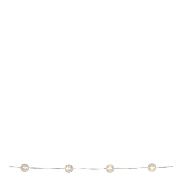 Berry lyslenke fra Star Trading er en dekorativ og fleksibel batteridrevet lysslynge som passer perfekt til å skape stemning i uterommet. Med 50 varmhvite LED-lys og transparente kuledekorasjoner gir den et mykt og innbydende uttrykk, enten det er til hverdag eller fest. Lenken er 5 meter lang og leveres med en batteriboks som er godkjent for utendørs bruk. Du kan velge mellom hele 8 ulike blinkesekvenser, i tillegg til praktisk timerfunksjon som slår lyset automatisk av og på. Dette gir deg full kontroll og fleksibilitet – uten behov for strømuttak eller faste installasjoner. Perfekt til å dekorere hagebusker, rekkverk, terrasser eller inngangspartier. Berry gir uteplassen et levende og stemningsfullt løft – hele året.
