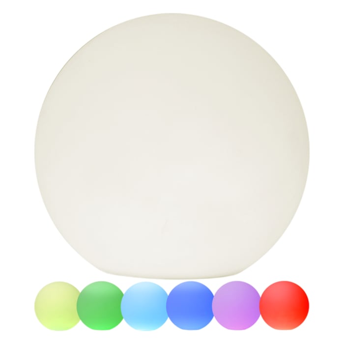 Fargesprakende RGB-belysning for uteplass og altan som styres med fjernkontroll. Velg mellom skiftende farger eller kontinuerlig lys med én farge. Lades med medfølgende lader – det innebygde batteriet holder i 8 t. Det er fint å kombinere flere ulike størrelser. IP44. Lyseffekt: 0,5 W. Mål: Ø25x23,5 cm.
