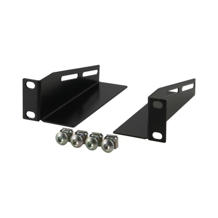 Stabile støtteskinner for montering i rack. Passer både 10" og 19". Dybde: 136 mm. 4 skruer og muttere følger med.