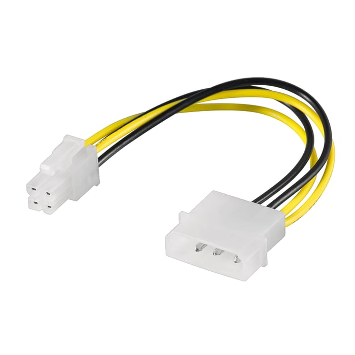 Strømadapter fra 4-pinners Molex til P4. Lengde: 16 cm.